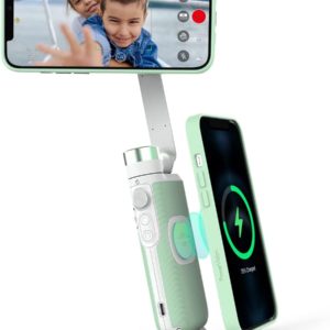 • PowerVision S1 3-Axis Gimbal Stabilizer Smartphone Gimbal Portable and Foldable, Built-in Tripod Wireless Powerbank, AI Tracking of Motions and Faces, Vlogging Stabilizer (Car Mount Kit, Green)