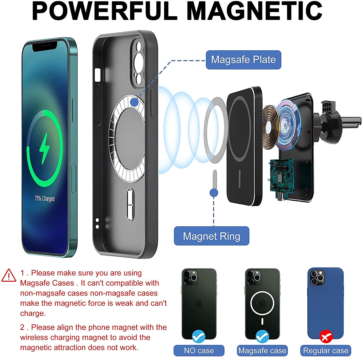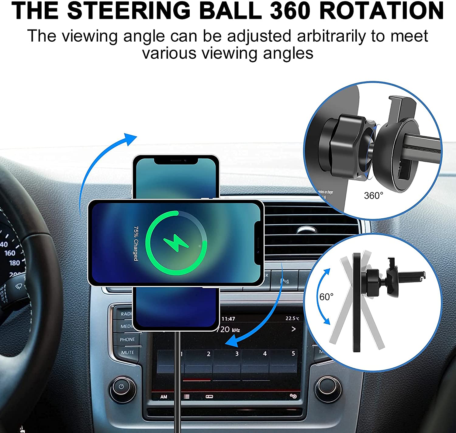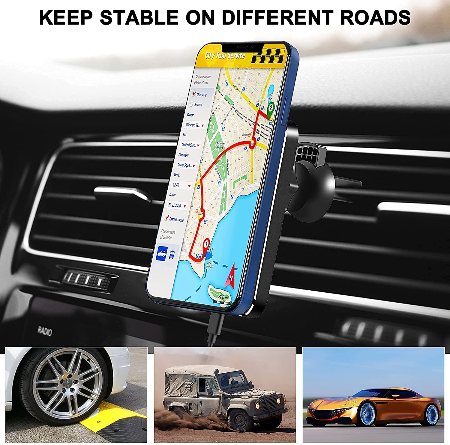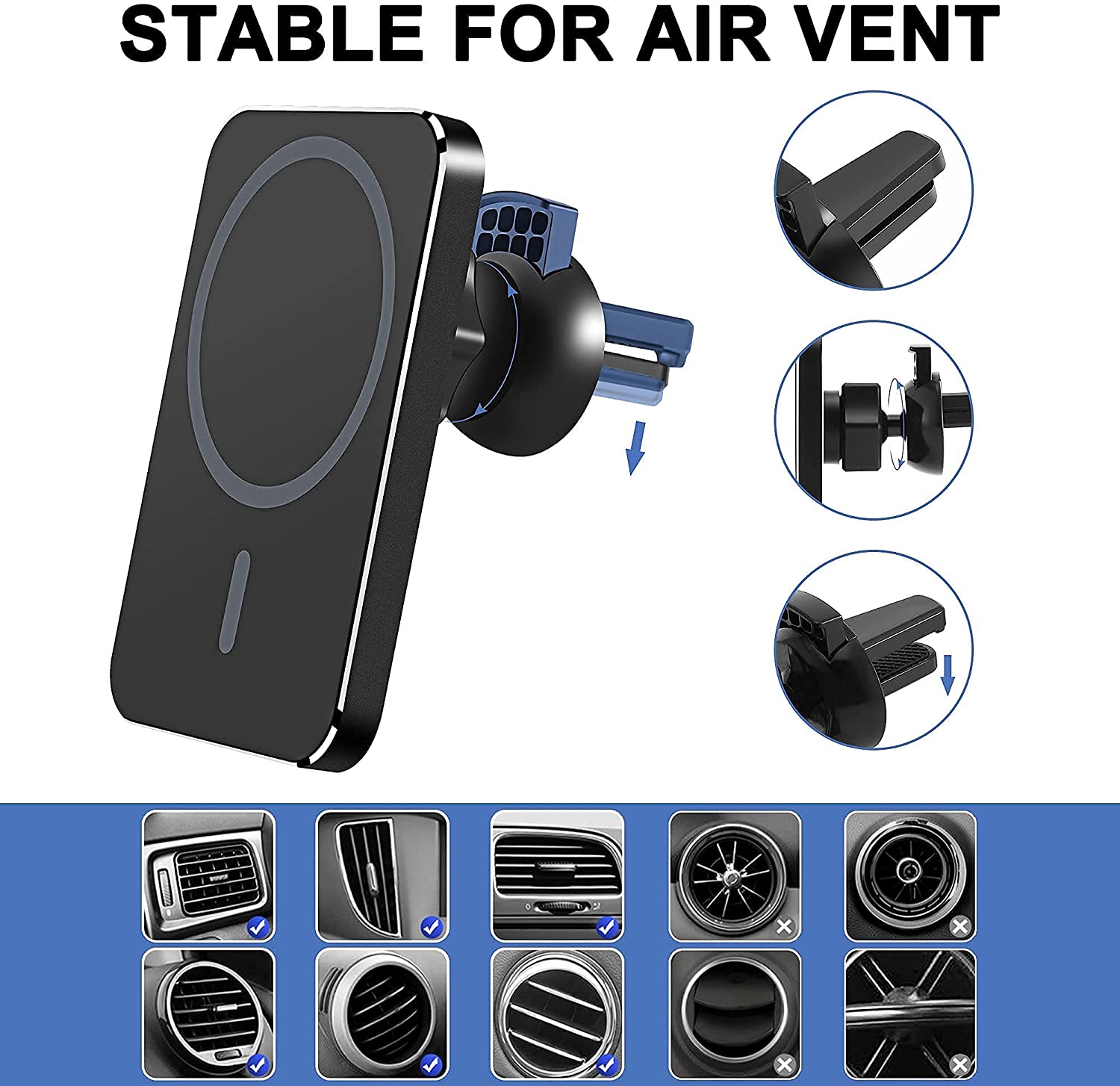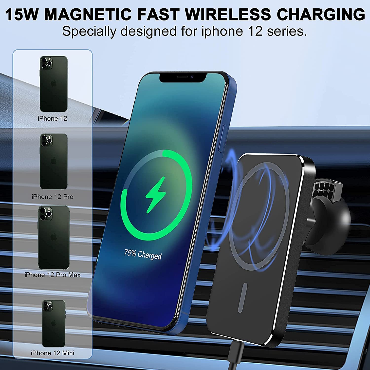 Magnetic Wireless Car Mount Charger, 15W Fast Charge Auto-Alignment Air Vent Phone Holder Stand 360В° Rotation Compatible with iPhone 12/13 Mini/Pro/Pro Max